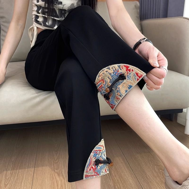 Celana wanita ukuran besar, celana wanita sutra es, celana kasual lurus, celana gemuk, celana sutra es, celana musim panas wanita
