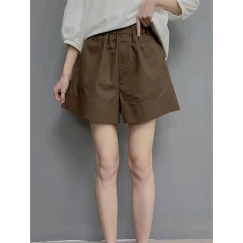 Celana pendek kasual kaki lebar pinggang tinggi wanita, celana pendek katun murni musim panas ekstra besar ramping longgar a-line