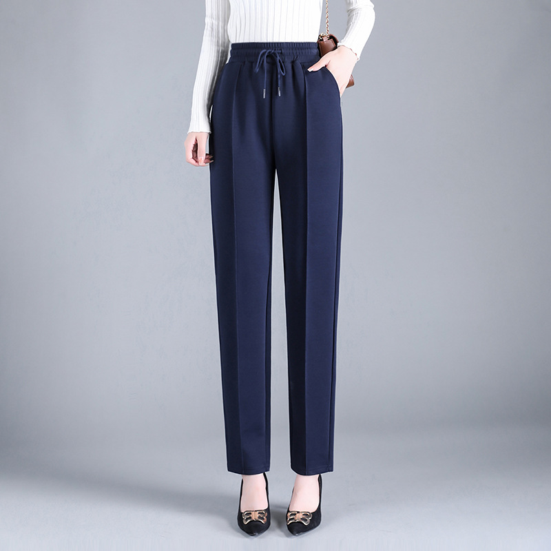 Celana panjang ibu paruh baya, Bawahan kasual bergaris bulu domba Musim Semi dan Gugur celana panjang longgar ukuran besar 2037