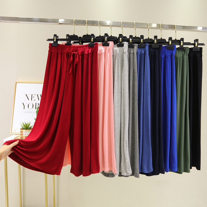 Celana wanita, Modal dipotong kaki lebar, musim panas longgar, ukuran besar, celana wanita pelangsing, celana kasual lebar rumah