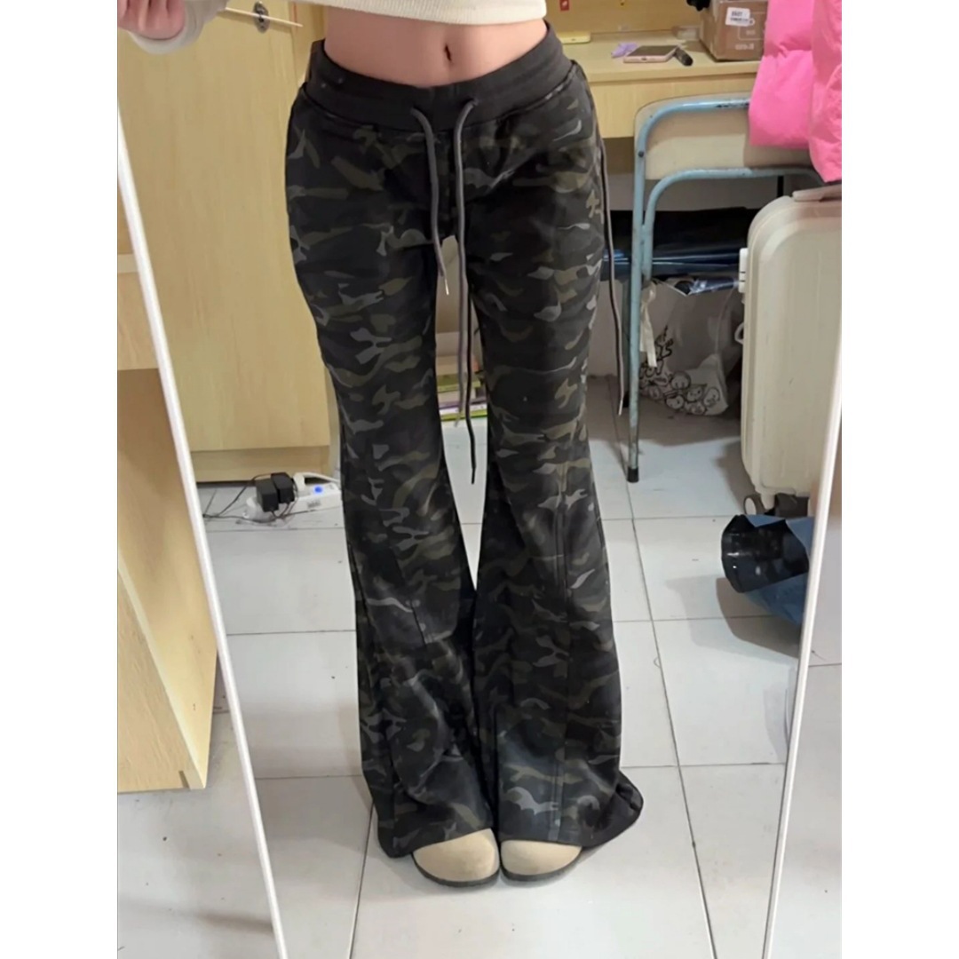 Gadis Pedas Pakaian Kerja Kamuflase Pinggang Rendah Celana Kasual Ukuran Besar Longgar Terlihat Langsing Celana Kaki Lebar Musim Panas Wanita Celana Panjang Lurus