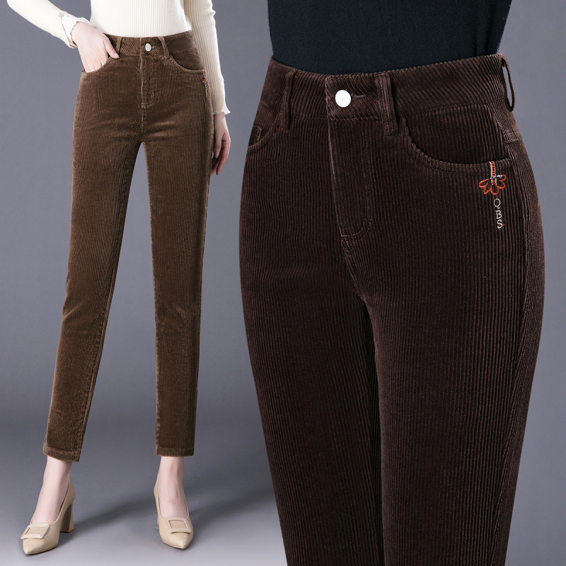 Celana wanita korduroi, celana wanita korduroi, celana lurus pinggang tinggi, celana ibu usia sedang ukuran besar, celana panjang korduroi tebal, celana bulu domba baru musim gugur dan musim dingin