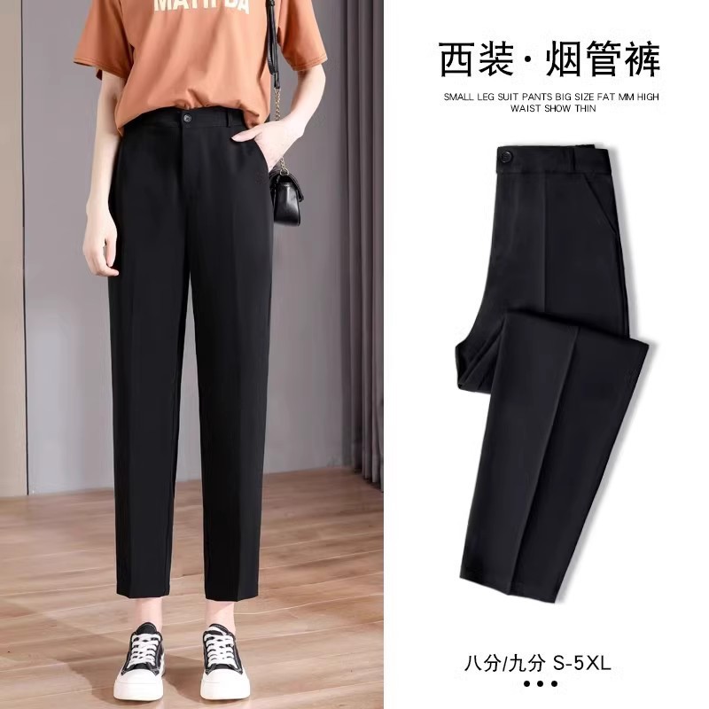 Celana ketat pinggang tinggi wanita, celana menggantung ukuran besar kasual, setelan celana hitam musim semi dan gugur 2024