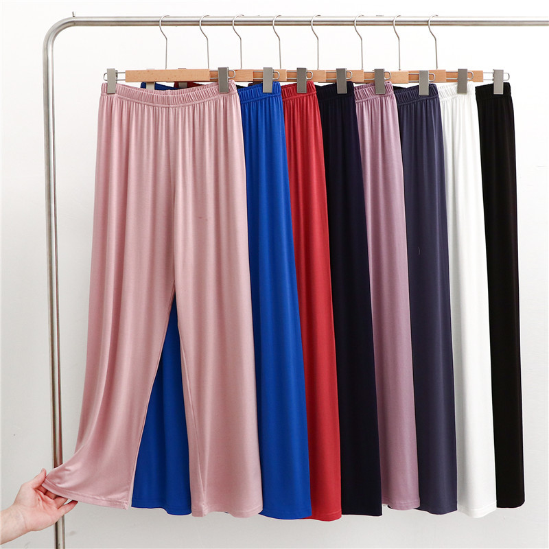Celana piyama modal longgar wanita, celana kasual luar ruangan ukuran besar, celana rumah warna polos, celana anti-nyamuk tipis, celana AC musim panas