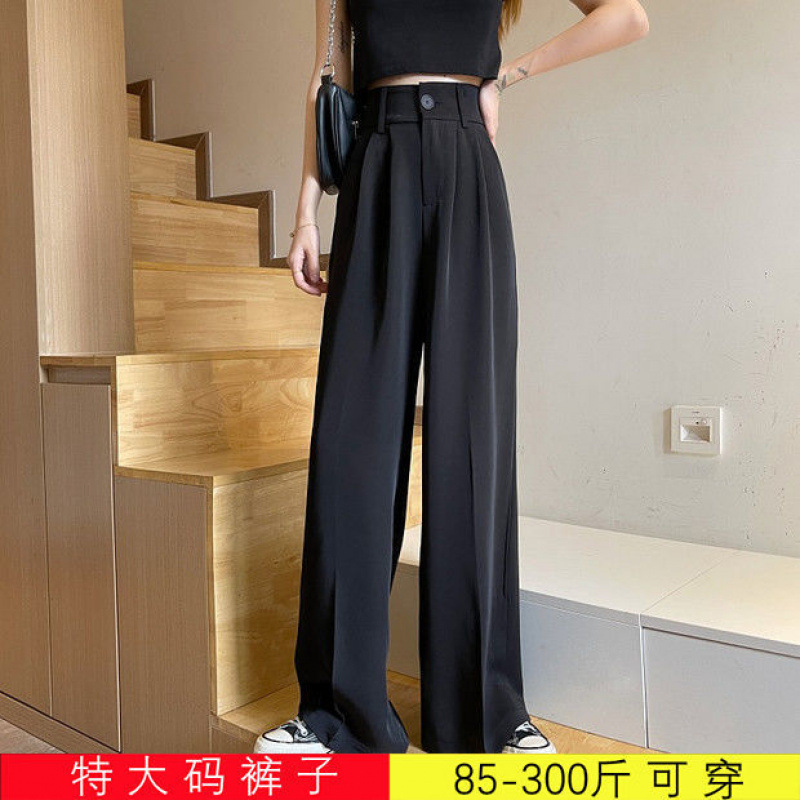 Celana Panjang Kaki Lebar Lurus Kasual Mudah Dipadu Padan Pinggang Tinggi Berlemak Musim Panas Wanita Ukuran Super Besar 300Kg