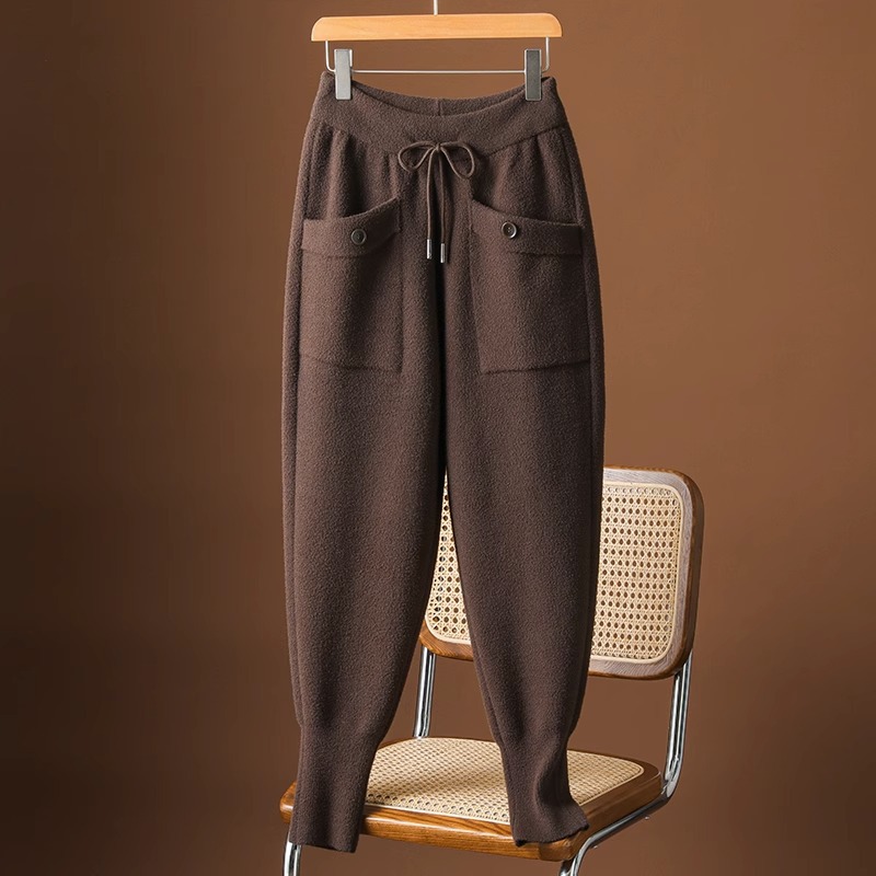 Celana harem kasmir tebal coklat untuk wanita, celana legging kasmir dua sisi pinggang tinggi ukuran besar longgar baru 2023
