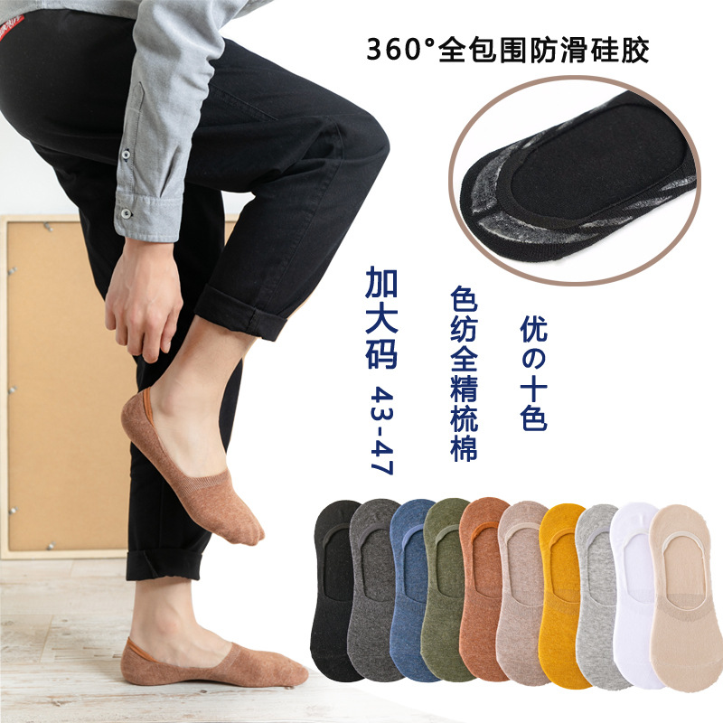 Kaus kaki tapak pria musim panas warna polos katun 47 ukuran plus plus kaus kaki tak terlihat antiselip silikon ukuran ekstra besar untuk pria