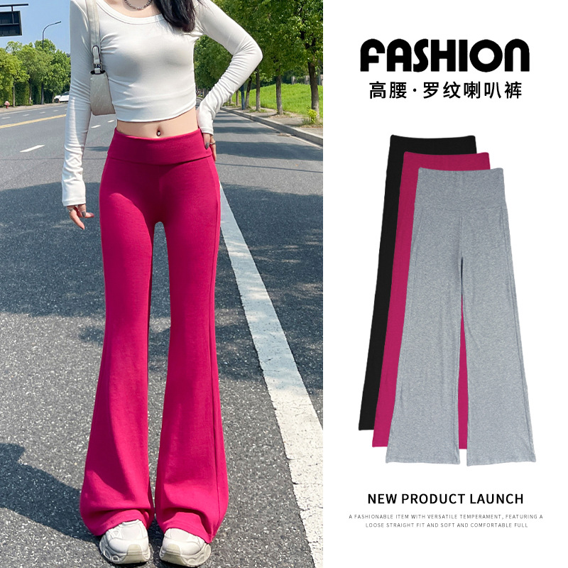 美式翻腰微喇运动瑜伽裤女春秋修身辣妹显瘦垂感休闲针织阔腿裤子