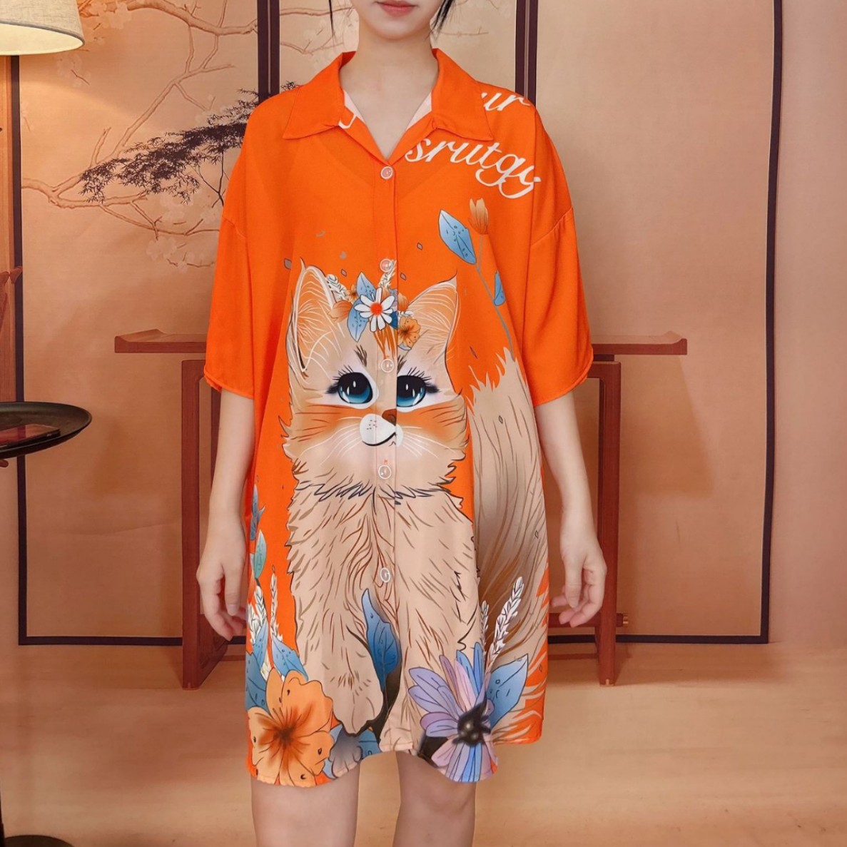 1-100 motif bunga siaran langsung gaun tidur sutra es baru untuk wanita, piyama kardigan tipis seksi musim panas, pakaian santai longgar mewah ringan
