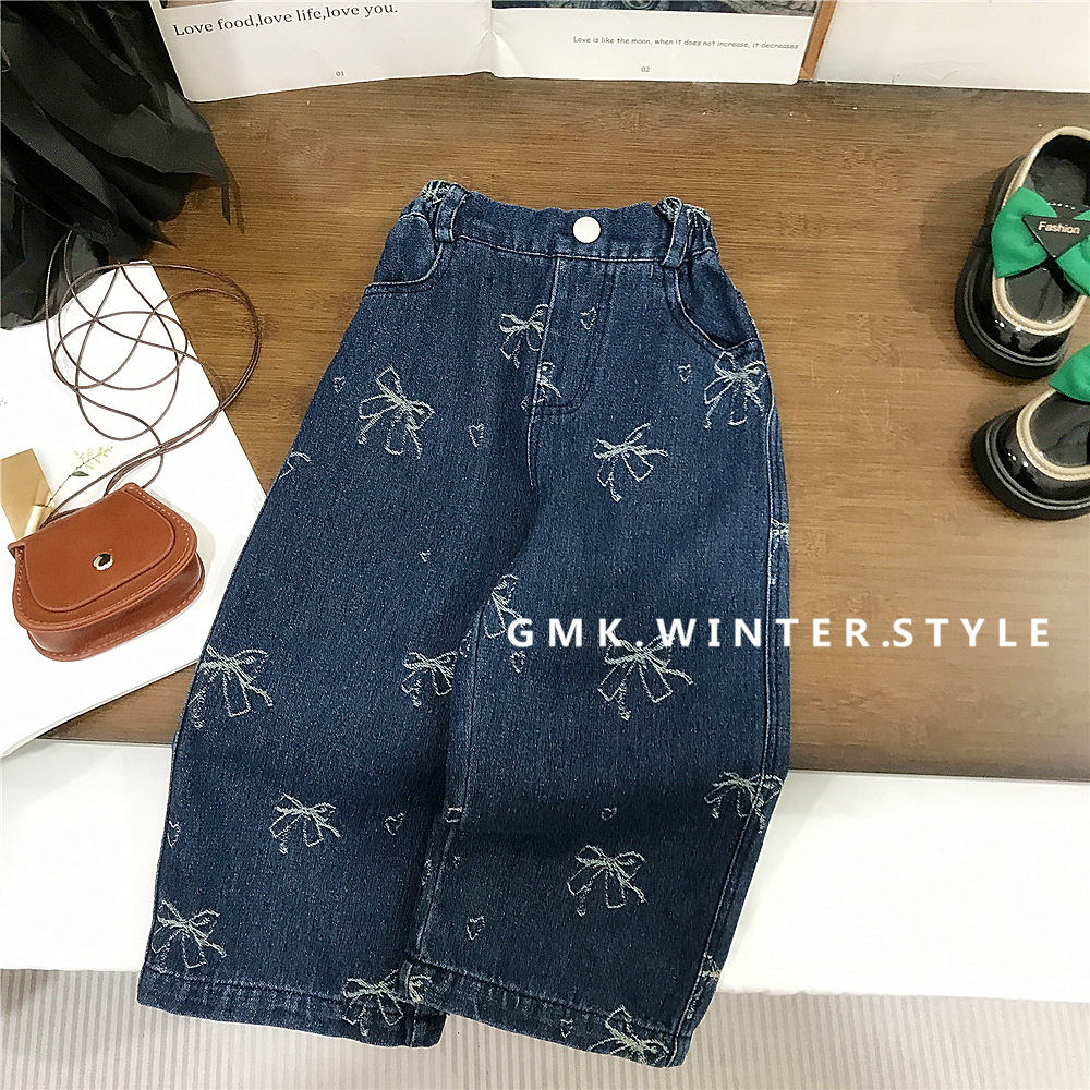 女童裤子春秋款新款儿童牛仔裤休闲宽松直筒裤洋气宝宝阔腿裤外贸