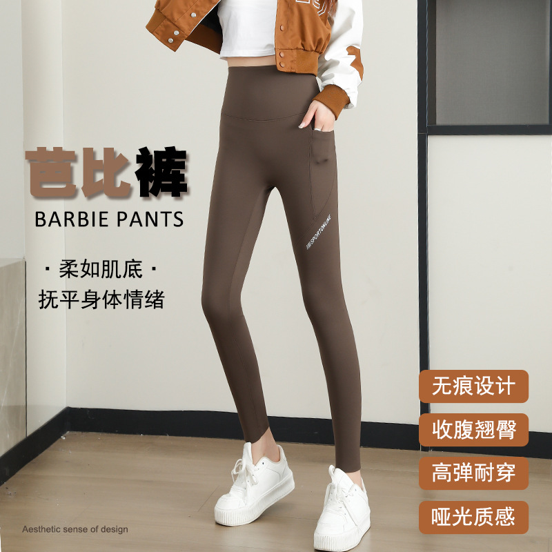 Celana yoga ketat wanita, pakaian luar wanita pakaian luar pinggang tinggi baru 2024 mengangkat pinggul elastis celana yoga ketat musim semi dan musim gugur perut korset Barbie legging
