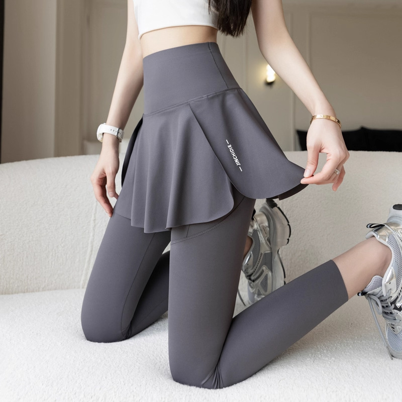 假两件瑜伽裤裙屁帘带口袋高腰收腹修身显瘦健身芭比打底鲨鱼裤女