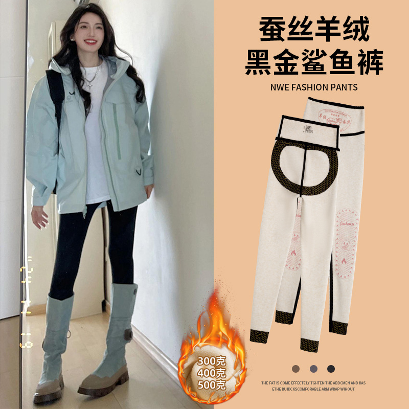 羊绒蚕丝鲨鱼裤女外穿秋冬款保暖棉裤秋裤瑜伽大码加绒加厚打底裤