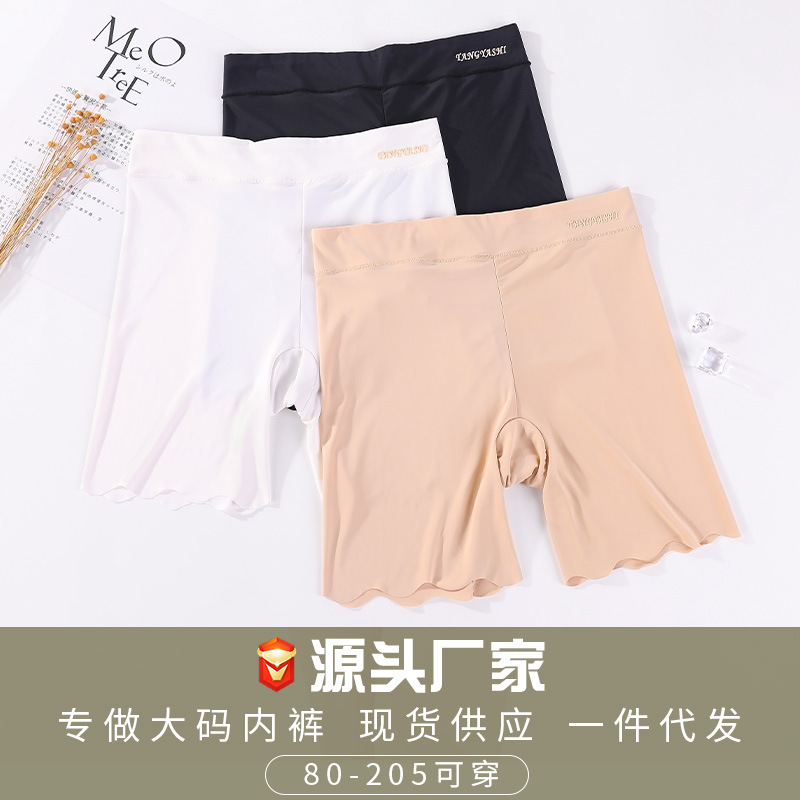 Celana pengaman ukuran Plus wanita, celana dalam wanita anti-cahaya tidak keriting tipis musim panas, celana dalam boxer es sutra, celana pendek kepala Bawah gadis gemuk