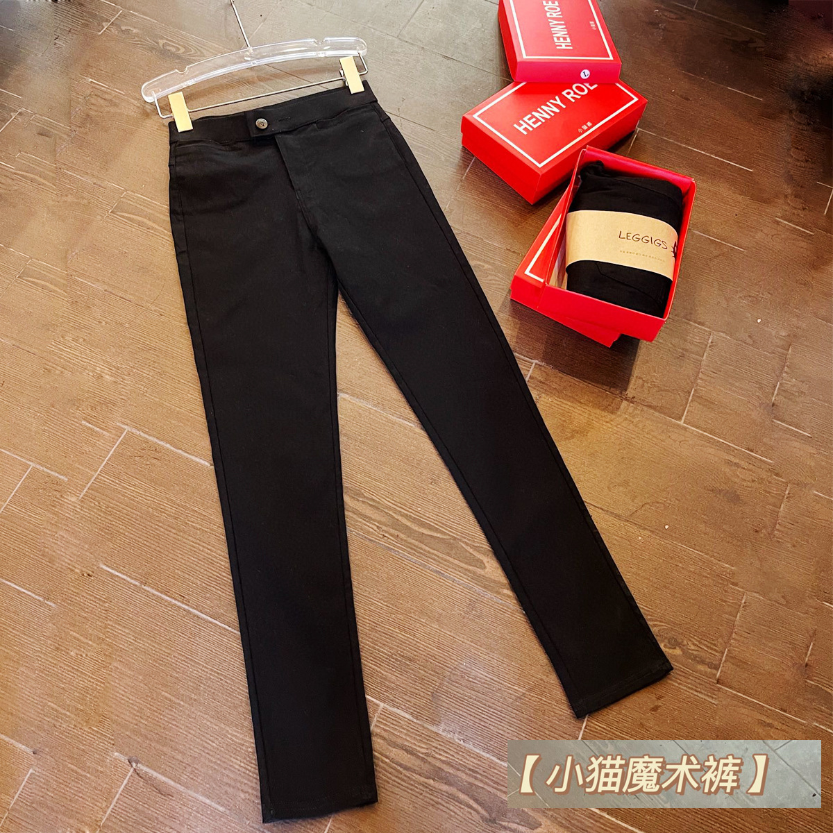 Celana ajaib model anak kucing gaya Korea untuk wanita, celana hitam lurus berpinggang tinggi untuk musim gugur dan musim dingin, potongan ramping, dapat dipakai di luar ruangan, legging untuk kaki kecil.