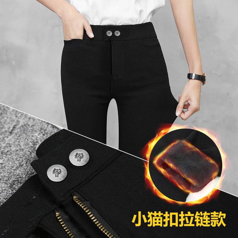 Musim semi dan musim gugur celana pensil model garis bulu tebal melar pakaian luar ramping celana pensil pelangsing celana ajaib anak kucing musim gugur wanita