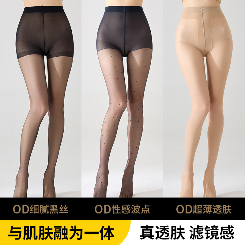Stoking sutra wanita tipis musim panas cahaya kaki artefak warna daging pantyhose kecil ultra-tipis diperpanjang anti-snagging sutra ukuran besar sutra hitam