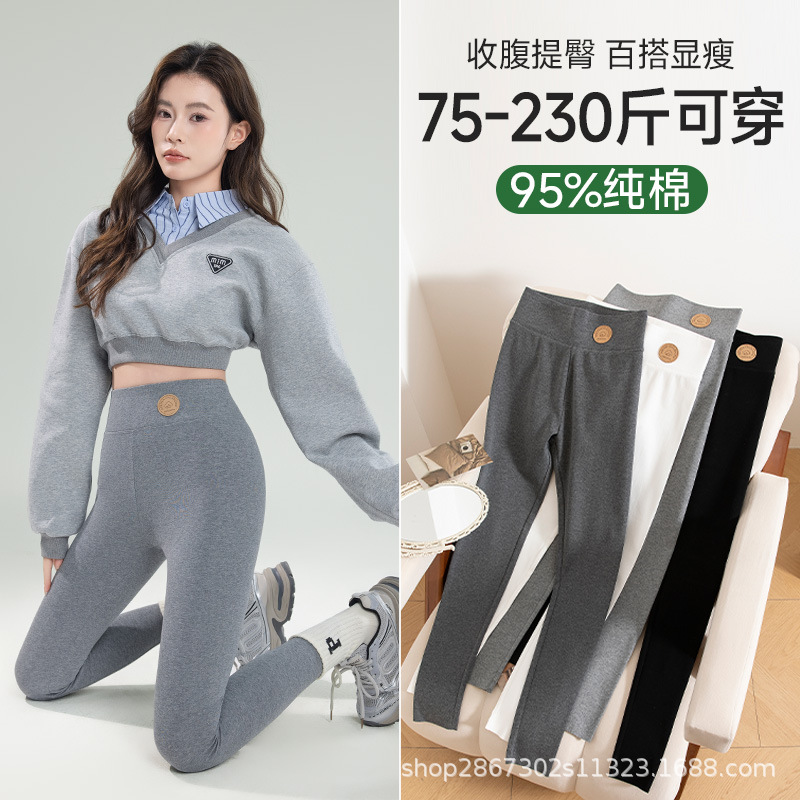 2023 musim semi dan musim gugur legging katun hitam pakaian luar wanita ramping tipis panjang jogn panjang musim gugur dan musim dingin peregangan ukuran besar