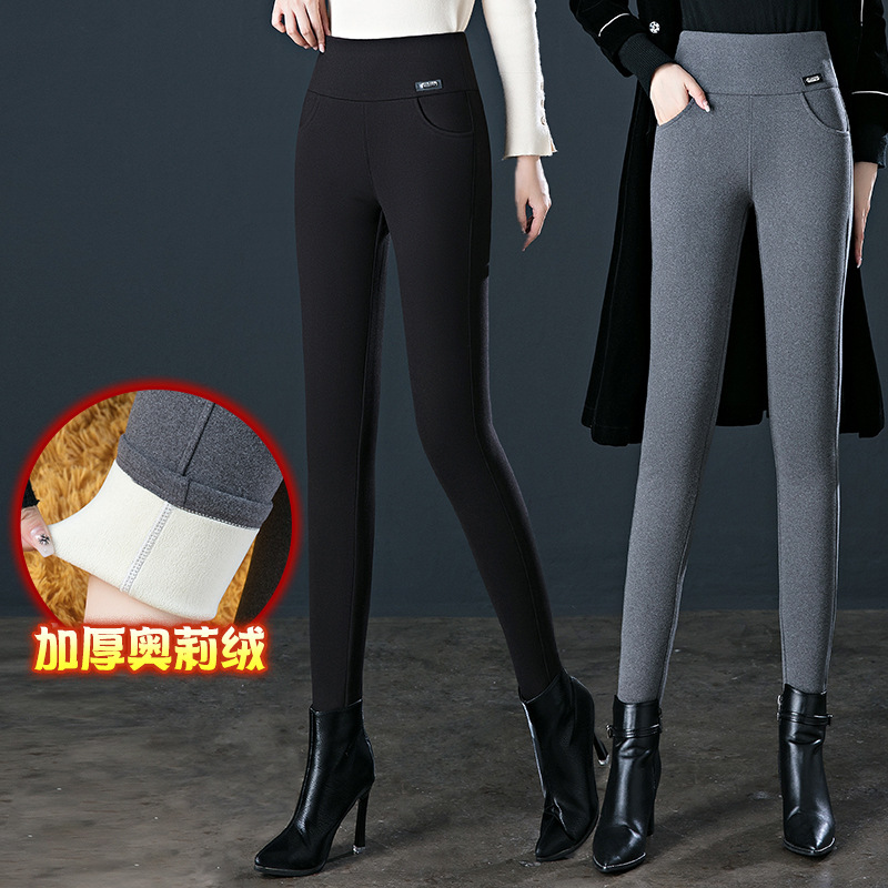 Legging tebal baru musim gugur dan musim dingin celana hangat berlapis bulu wanita celana pendek kaki artefak lampwool musim semi dan musim gugur pakaian luar pinggang tinggi ukuran plus