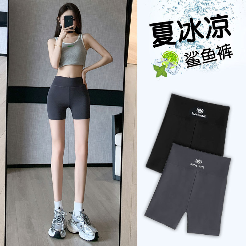 Celana Hiu Tiga Poin Sutra Es Wanita Pakaian Luar Musim Panas Model Tipis Mengangkat Pinggul Mengangkat Pinggul Berkendara Yoga Anti Terang Celana Pendek Dalaman