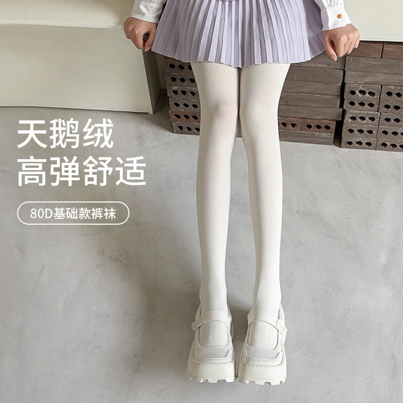 Stoking putih wanita musim semi dan musim gugur 80D tekanan legging kurus musim gugur dan musim dingin sutra putih beludru matte stoking Dalaman