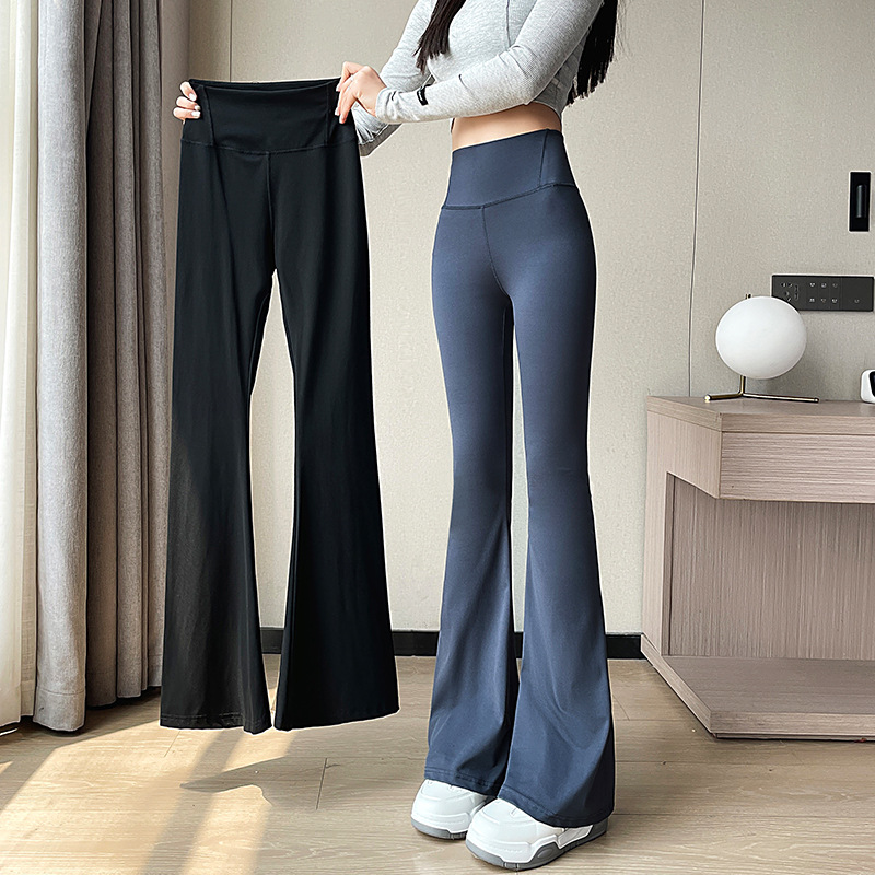 Celana model shark pants untuk wanita, cocok untuk musim semi dan gugur 2025, celana yoga bell-bottom hitam berlapis fleece, pinggang tinggi, dan potongan ramping.