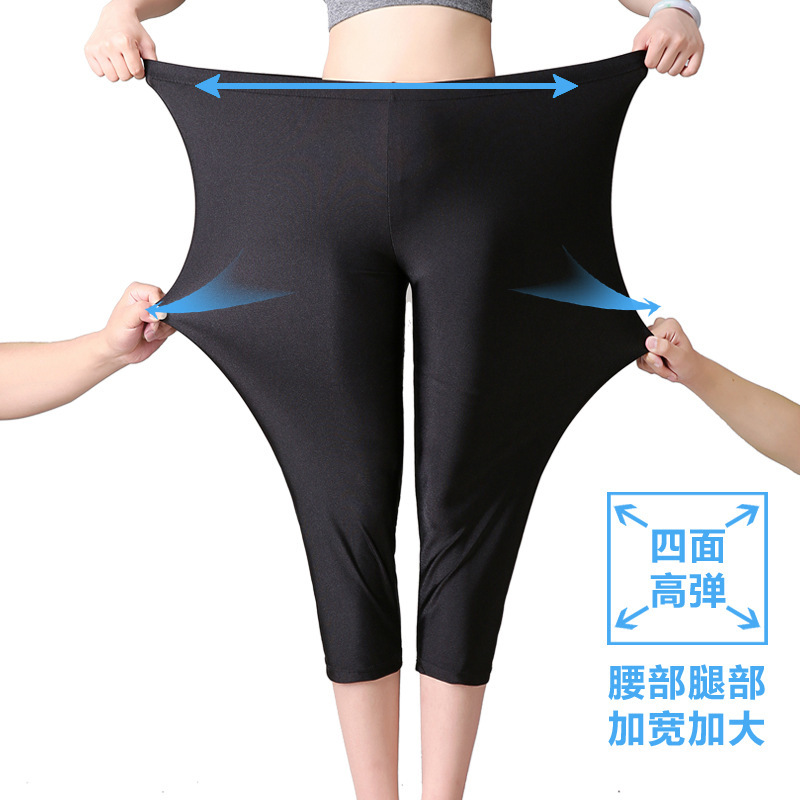 Celana crop tipis untuk wanita, celana legging 200kg ukuran ekstra besar mengkilap pinggang tinggi musim panas, celana ketat pakaian luar sutra es tipis