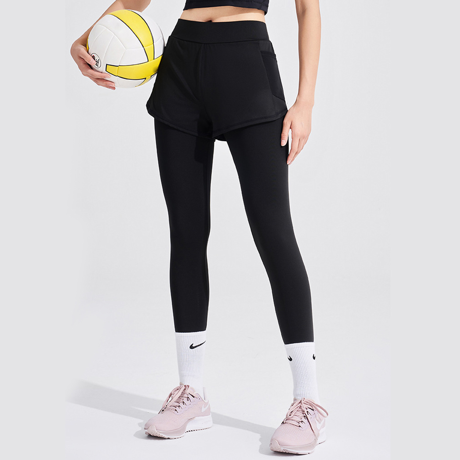 Celana Yoga Dua Potong Palsu Ukuran Besar Perdagangan Luar Negeri Lintas Batas Celana Kebugaran Celana Panjang Pelangsing Wanita Celana Olahraga Lari Ketat Pinggang Tinggi