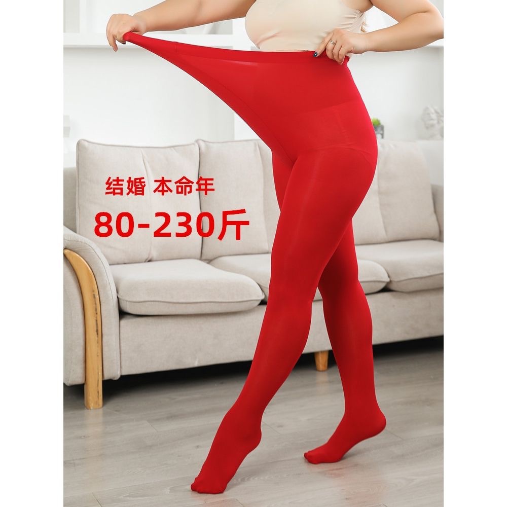 Legging Warna Merah Besar Wanita Stoking Pengantin Wanita Pernikahan Ukuran Besar Pantyhose Wanita Musim Semi Musim Gugur 200Kg Plus Berlemak dan Panjang