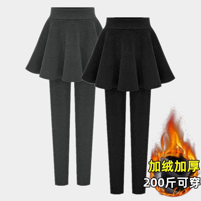 Stasiun Eropa pakaian wanita ukuran besar musim gugur dan musim dingin rok legging berlapis bulu tebal rok berlipat dua potong palsu celana rok a-line tipis 200kg