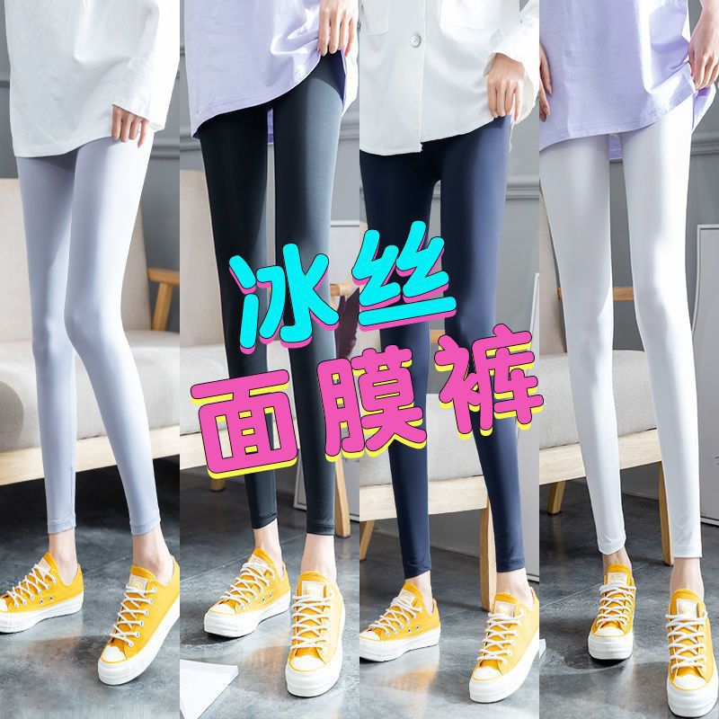 Celana Bottoming Wanita Dipakai Luar Musim Panas Model Tipis Sutra Es Elastis Slip Ketat Berkilau Musim Semi Musim Gugur Warna Hitam Putih