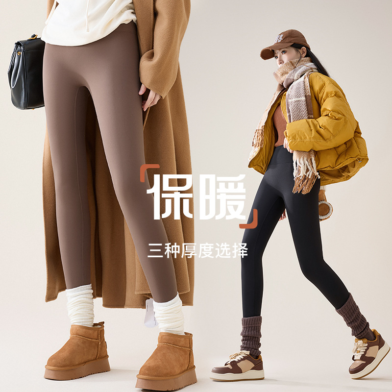 Legging artefak kaki ringan pakaian luar musim gugur dan musim dingin wanita lapisan ganda perasaan telanjang lapisan bulu tebal warna daging hangat cahaya stoking grosir