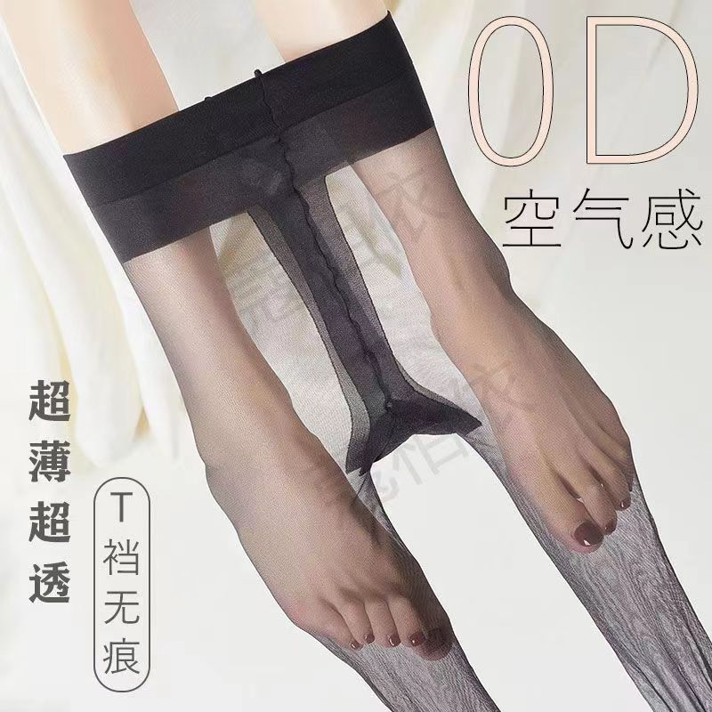 Stoking sutra gratis musim panas pantyhose sutra lubang tapak anti-kusut potongan acak tidak terlihat 0D tinggi transparan hitam sutra tipis wanita