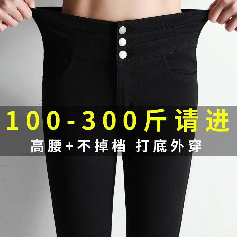 Celana Wanita Ukuran Besar Plus Berlemak Celana Legging Gadis Gemuk 200Kg Pinggang Tinggi Dipakai Luar Musim Semi Musim Gugur Elastis Kaki Kecil Terlihat Kurus Celana Hitam Kecil