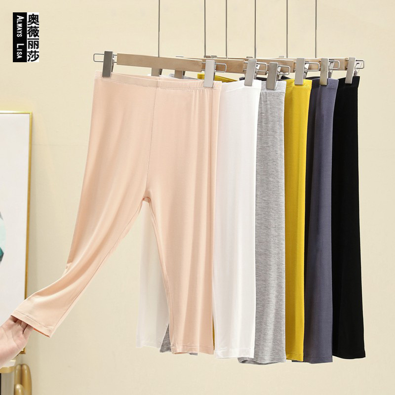 Celana panjang crop elastis wanita, pakaian luar Modal musim semi dan musim gugur tipis pakaian dalam ramping celana panjang ukuran besar