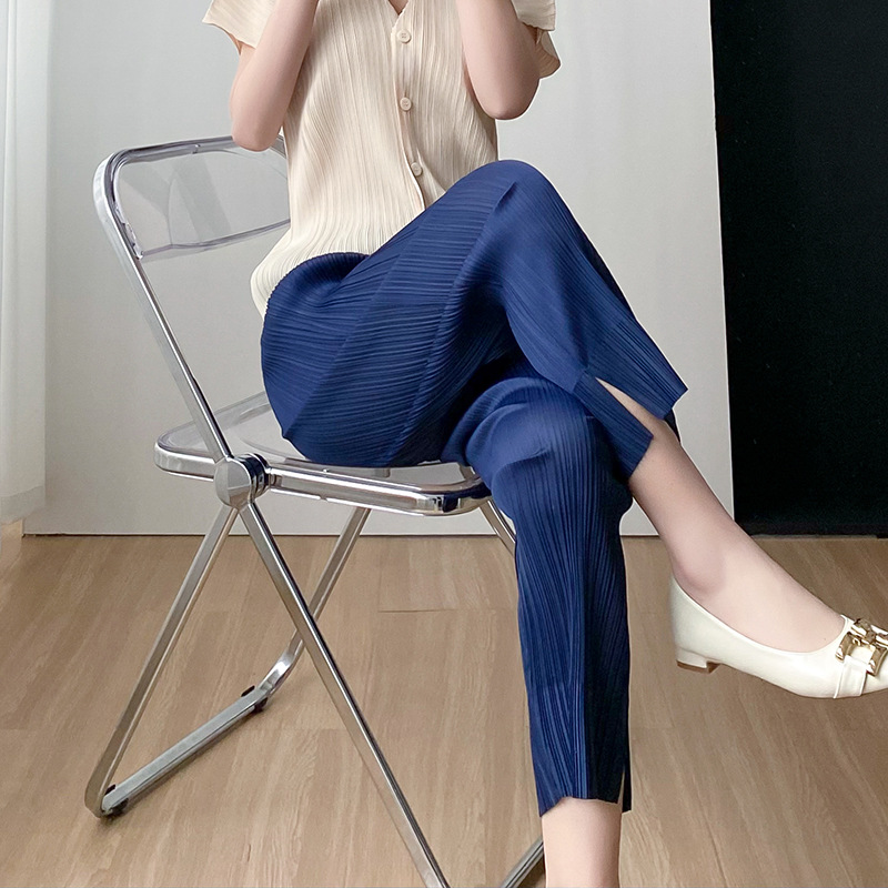 Sanzhai celana kasual elegan untuk wanita, celana kasual longgar netral pinggang lipit pas badan simpel Musim Panas 2023