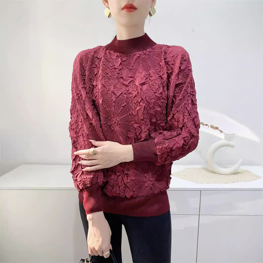 Kaus Leher Bulat Ukuran Besar Elegan Longgar Slim Fit Fashion Berlipat Berkelas Baru Musim Gugur 2024 Kualitas Konter Miyak