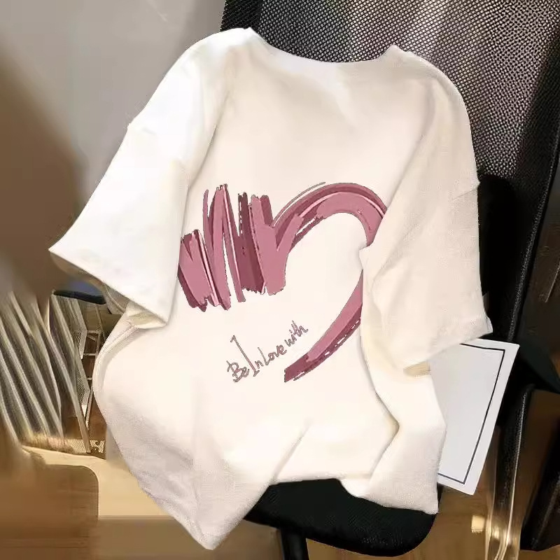 Kaus Katun 82380 Pakaian Musim Panas Model Baru 2024 Lengan Pendek Wanita T-shirt Lengan Setengah Panjang Leher Bulat Mudah Dipadu Padan Longgar Trendi Versi Korea Instagram