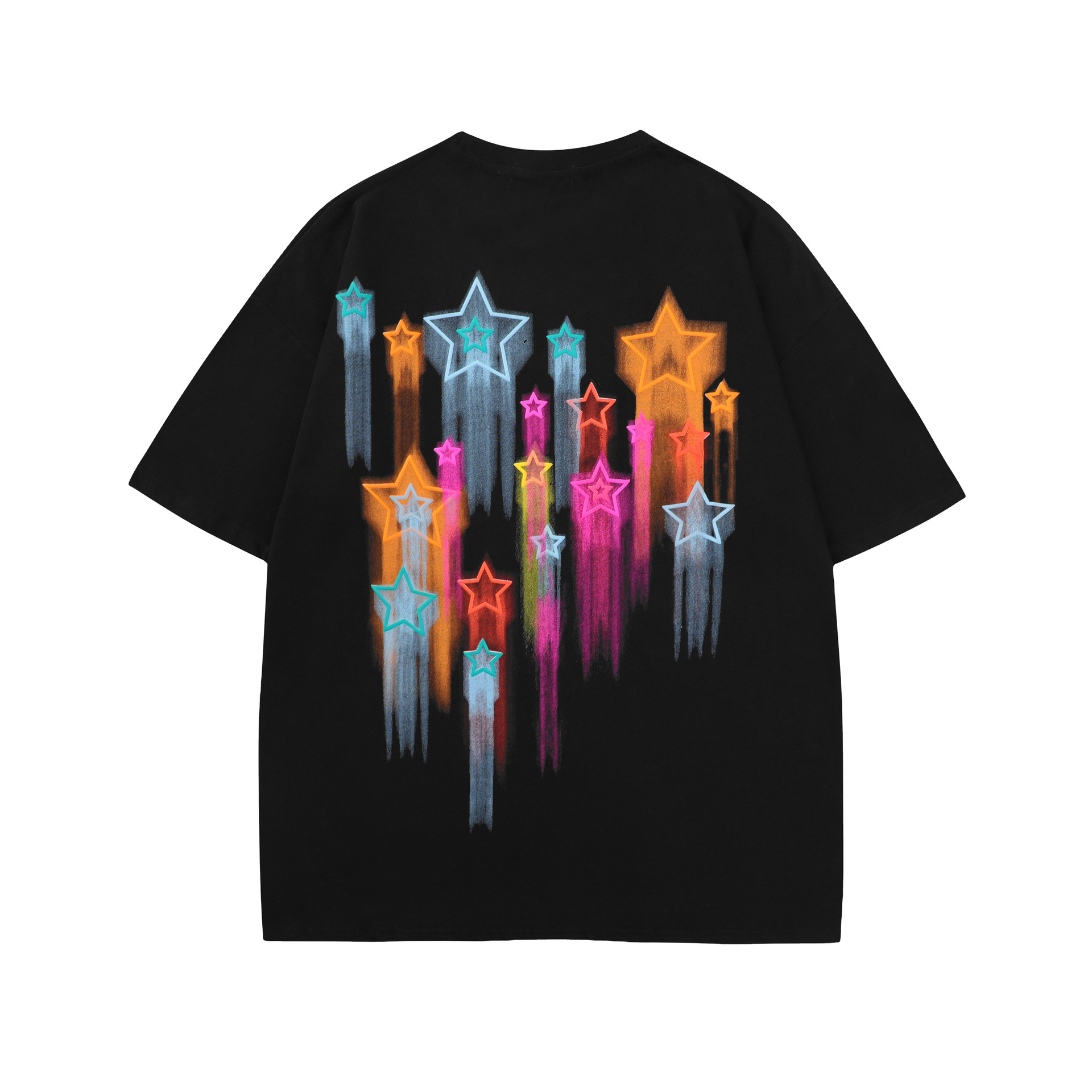 Qilin pakaian fashion merek nasional fashion berbintang dicetak lengan pendek kaus pria dan wanita ins trendi longgar pasangan T-shirt atasan
