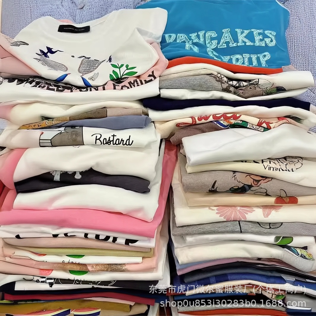 1-2 Yuan Musim Panas Stand Booth Pakaian Wanita Lengan Pendek T-Shirt Wanita Gaya Korea Longgar Atasan Wanita Perdagangan Luar Negeri Murah Grosir Sumber