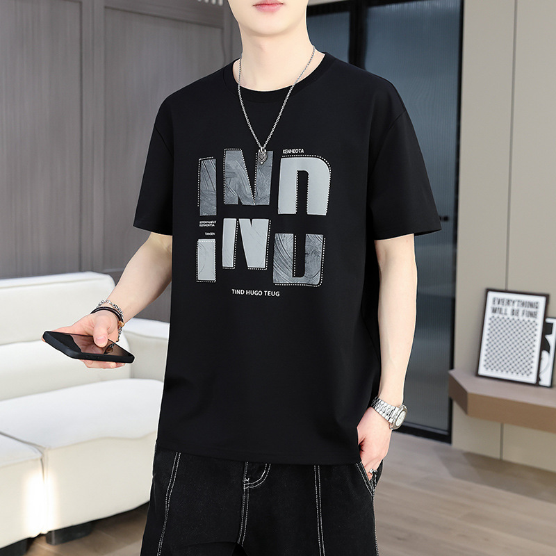 Kaos Lengan Pendek Kerah Bulat Berbahan Katun 230g Pria Musim Panas Lintas Batas Border