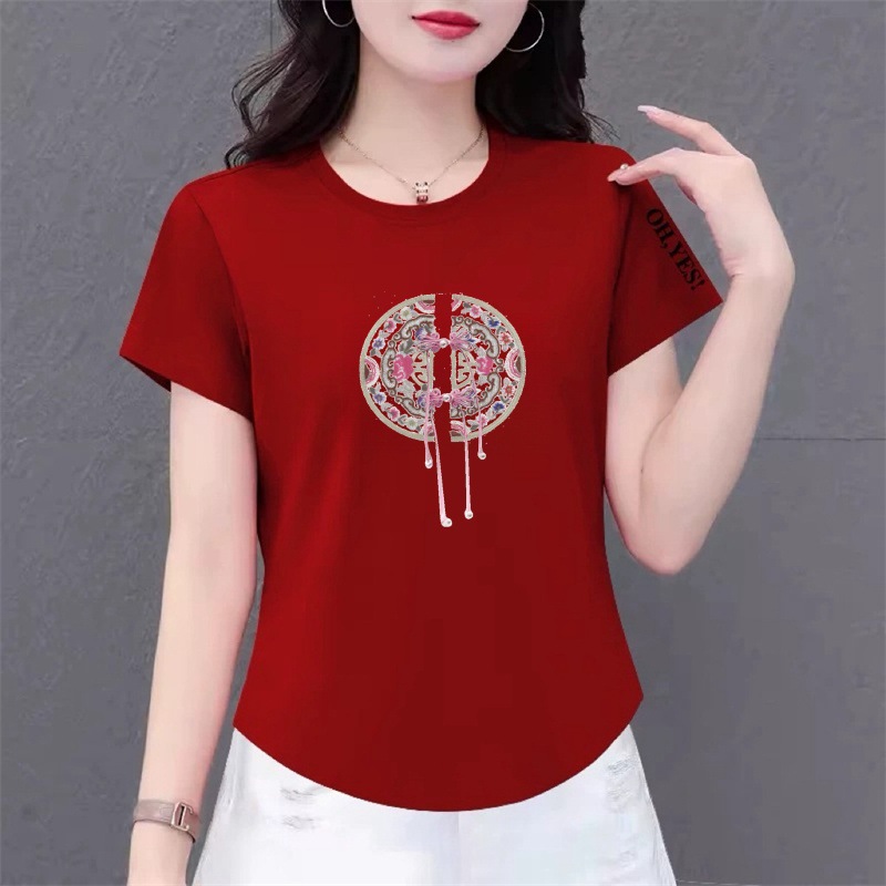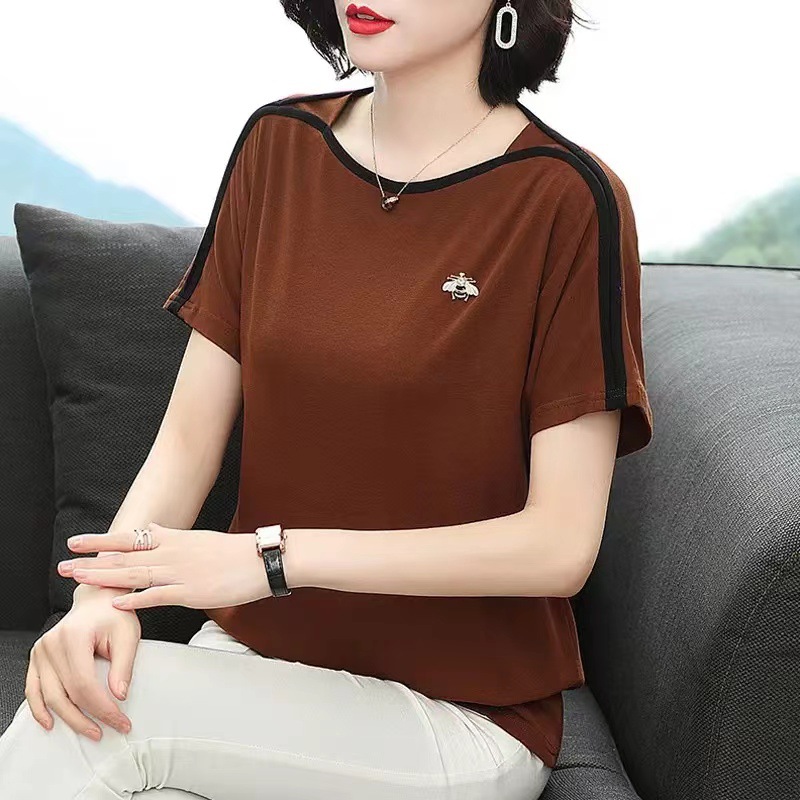 Baju Atasan Versi Korea Menutupi Perut Terlihat Kurus Ukuran Besar Longgar Wanita T-Shirt Lengan Pendek Gaya Tiongkok Baru