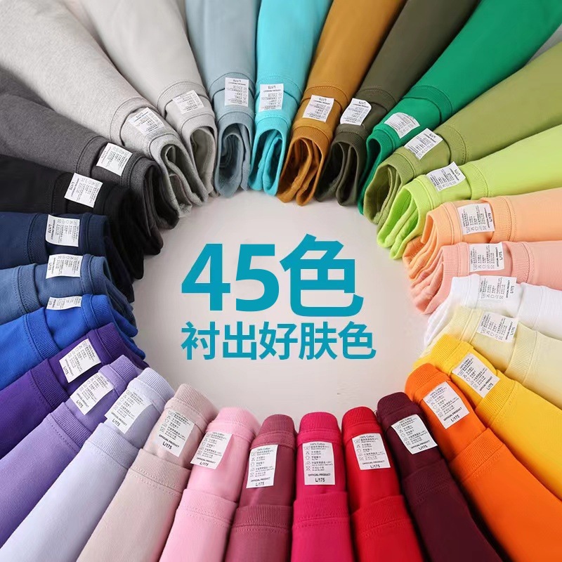 Kaus Pria dan Wanita Longgar Ukuran Besar Lengan Pendek Warna Murni Katun Murni Kelas Berat 2025 Atasan Pullover Ins Trendi Leher Bulat Setengah Lengan