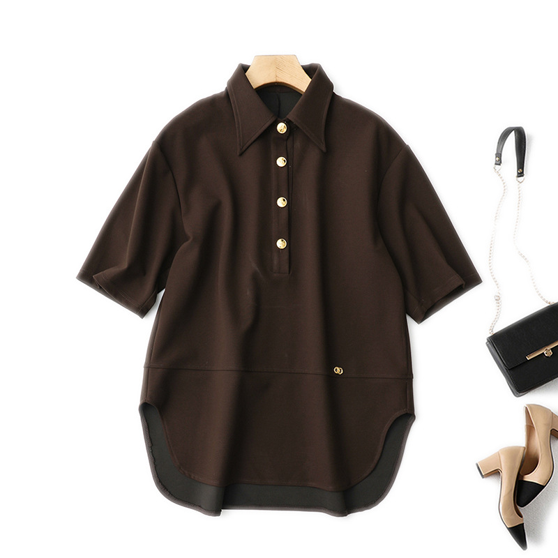 Pakaian Musim Semi dan Musim Panas Atasan Pendek Wanita Model Baru Lengan Pendek Desain Khusus Niche Ibu Elegan Wanita Gemuk Ukuran Besar Wanita Gemuk T-shirt Lipit