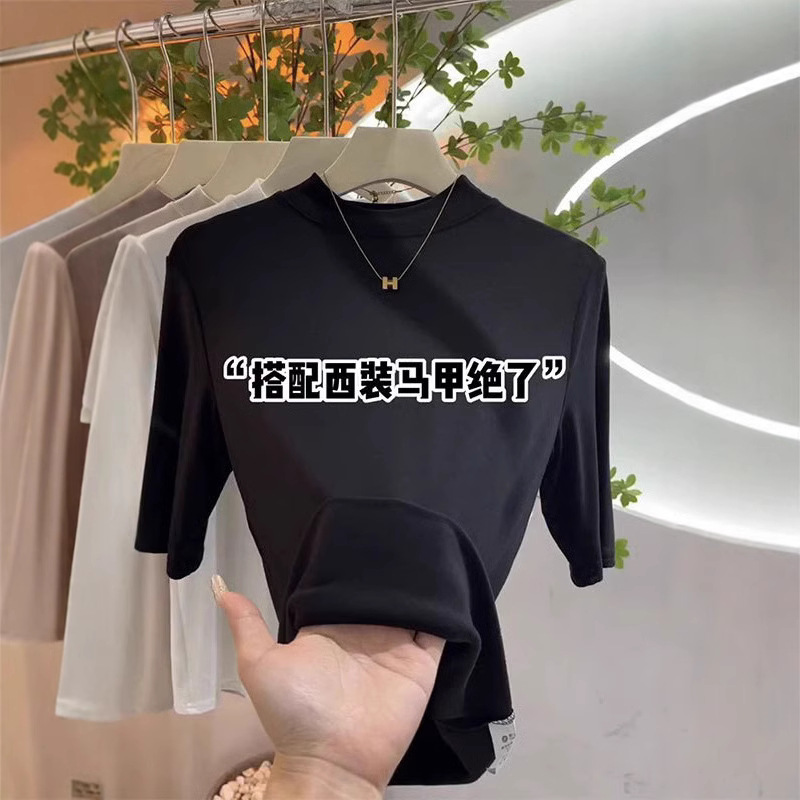 Kaus Wanita Lengan setengah turtleneck, kaus Wanita Lengan setengah setengah, kaus lengan pendek ukuran plus, kaus lengan setengah ketat kelas atas musim semi/musim panas