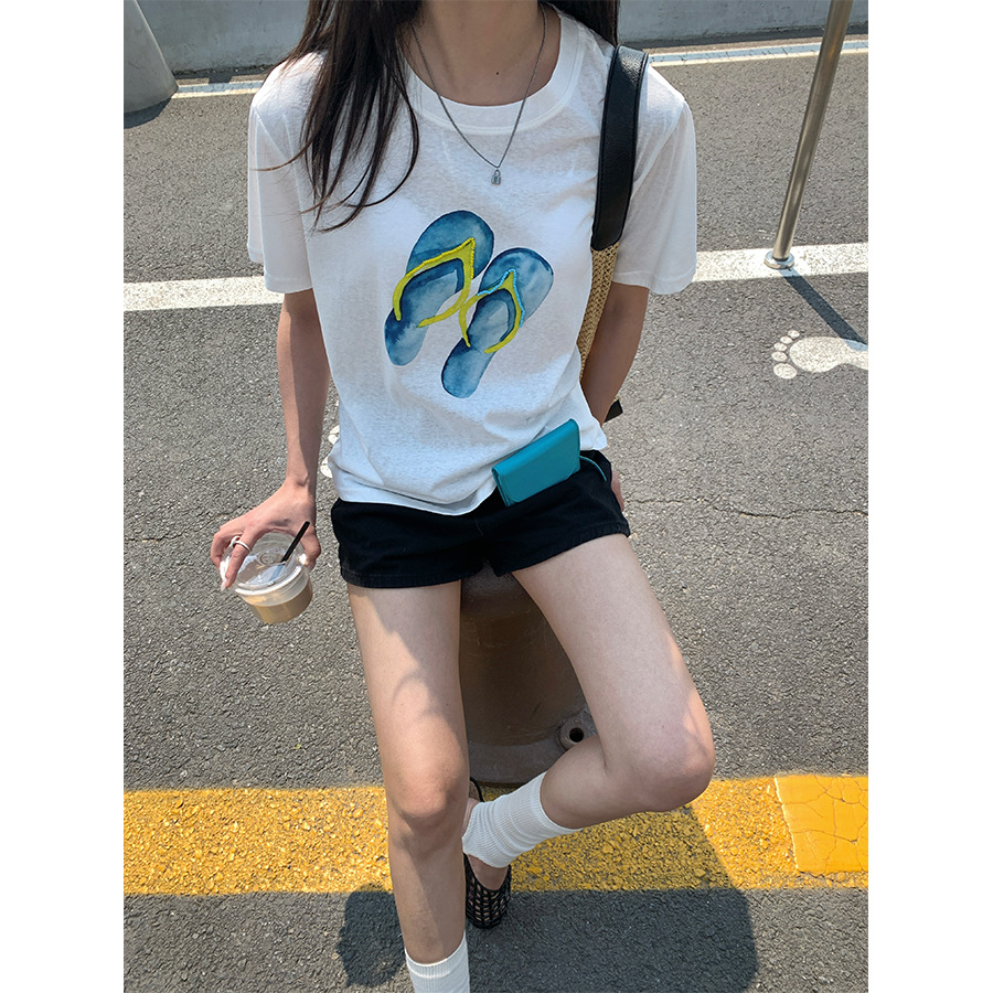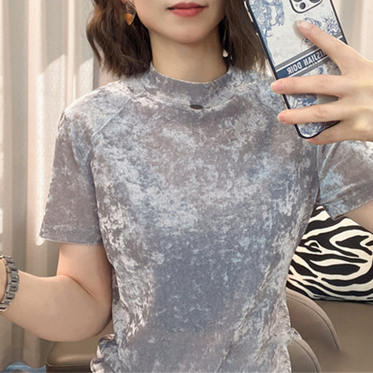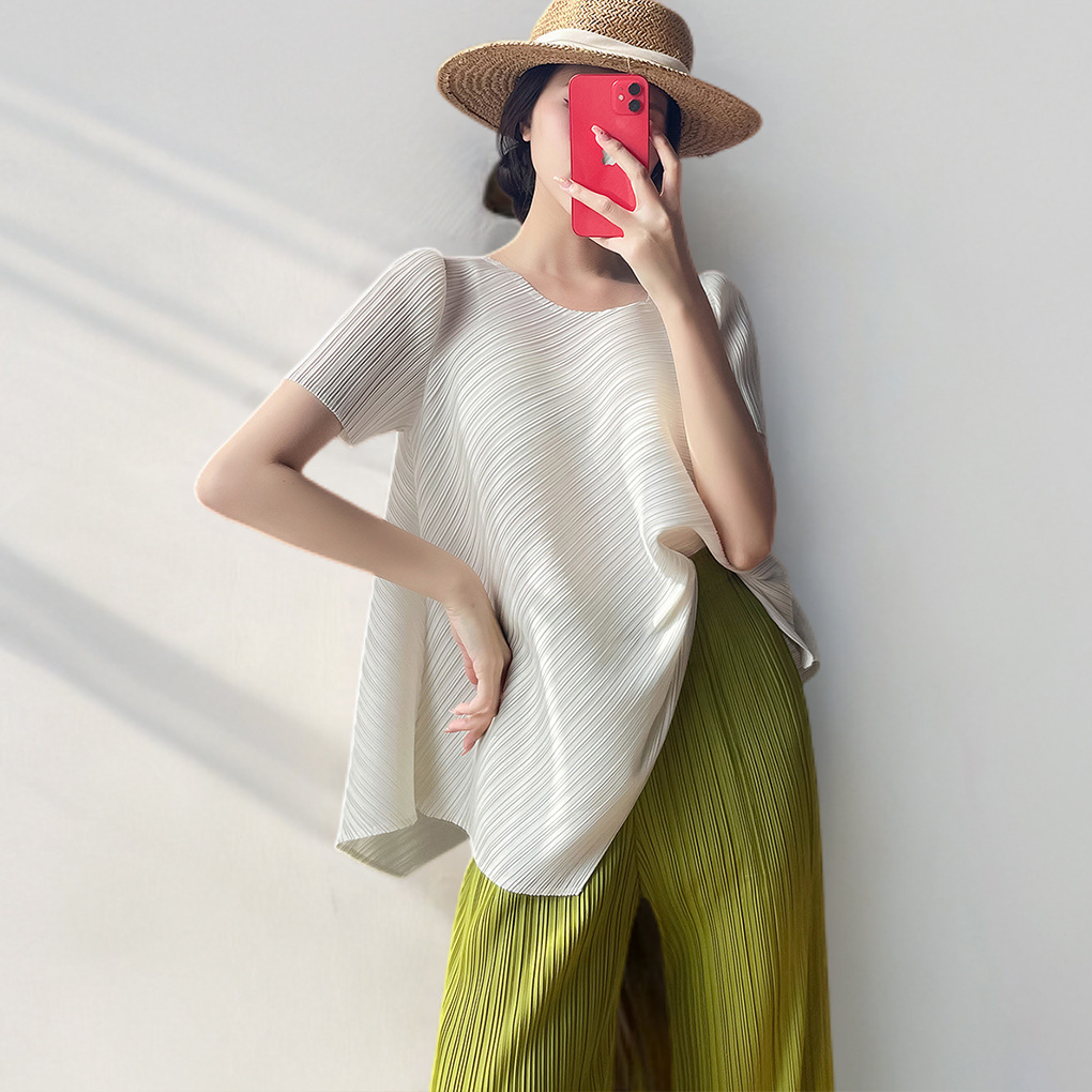 Sanzhai kaus lengan pendek semua cocok, Atasan Wanita berlipit longgar pelangsing tidak rata musim panas