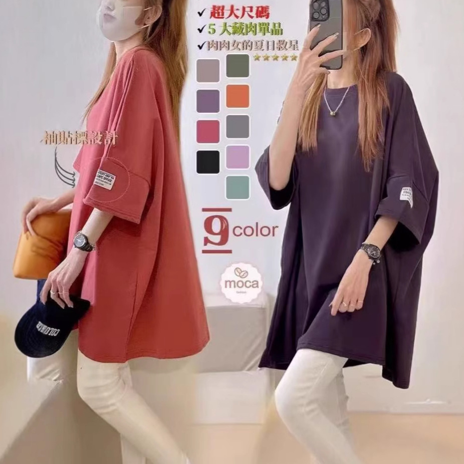 Kaus katun lengan pendek wanita, atasan kerah V longgar musim panas 60.00 kg-175.00 kg ukuran besar 2023