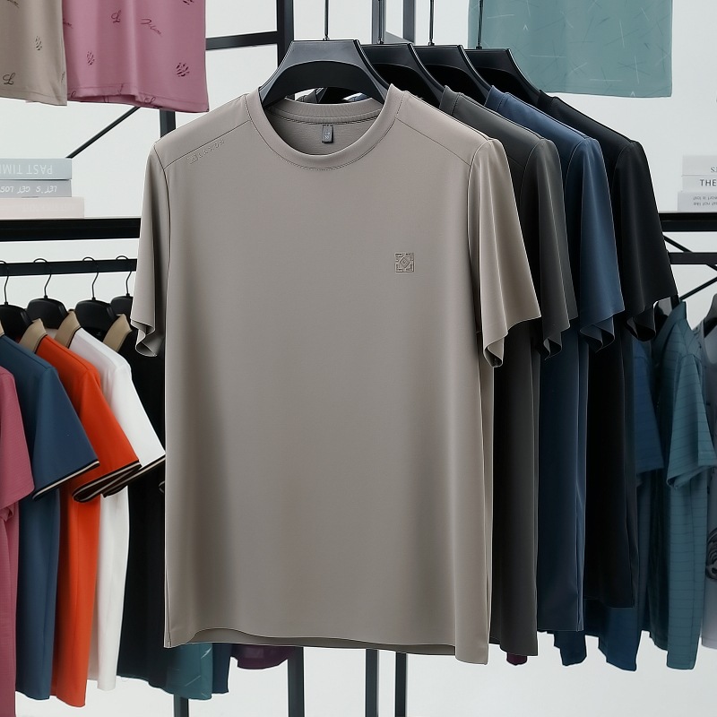 2025夏季新款冰丝短袖t恤男圆领垂感丝滑半袖薄款桑蚕丝无痕上衣