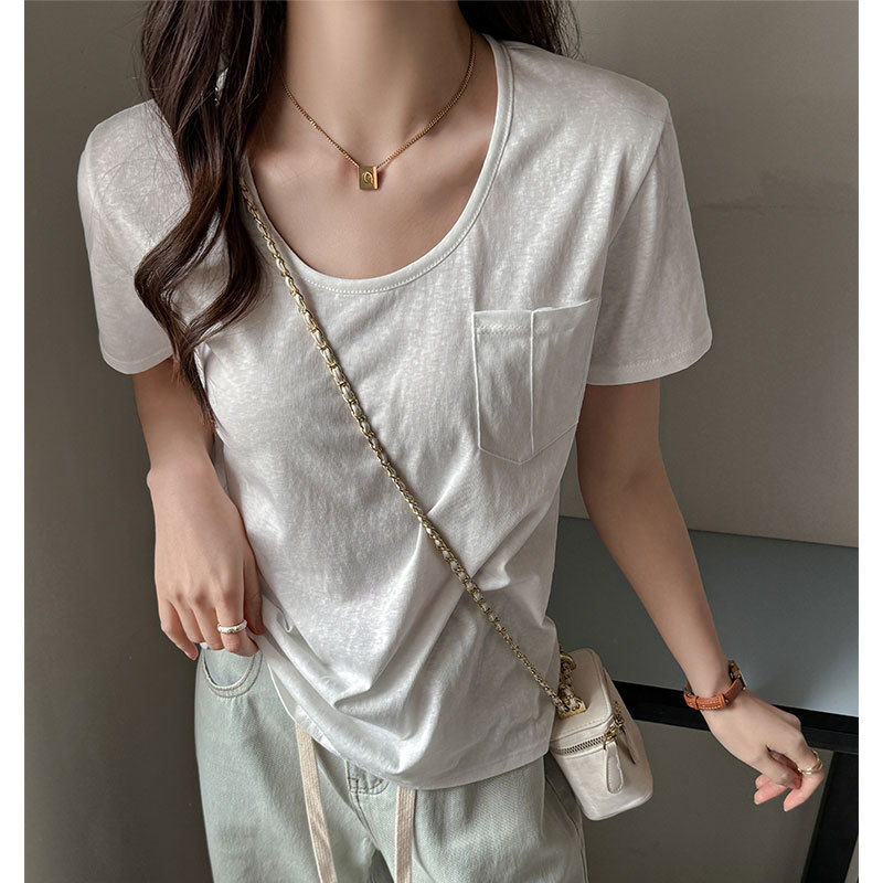 Kaus lengan pendek kecil wanita, baju atasan pendek ramping gaya Korea musim panas 2023
