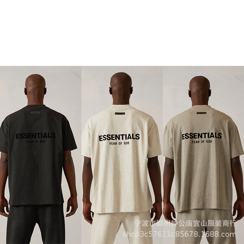 Kaus Lengan Pendek 2022SS Hitam Bertanam ESSENTIALS Merek Trendi Kaus Kaos Keringat T-Shirt Lintas Batas